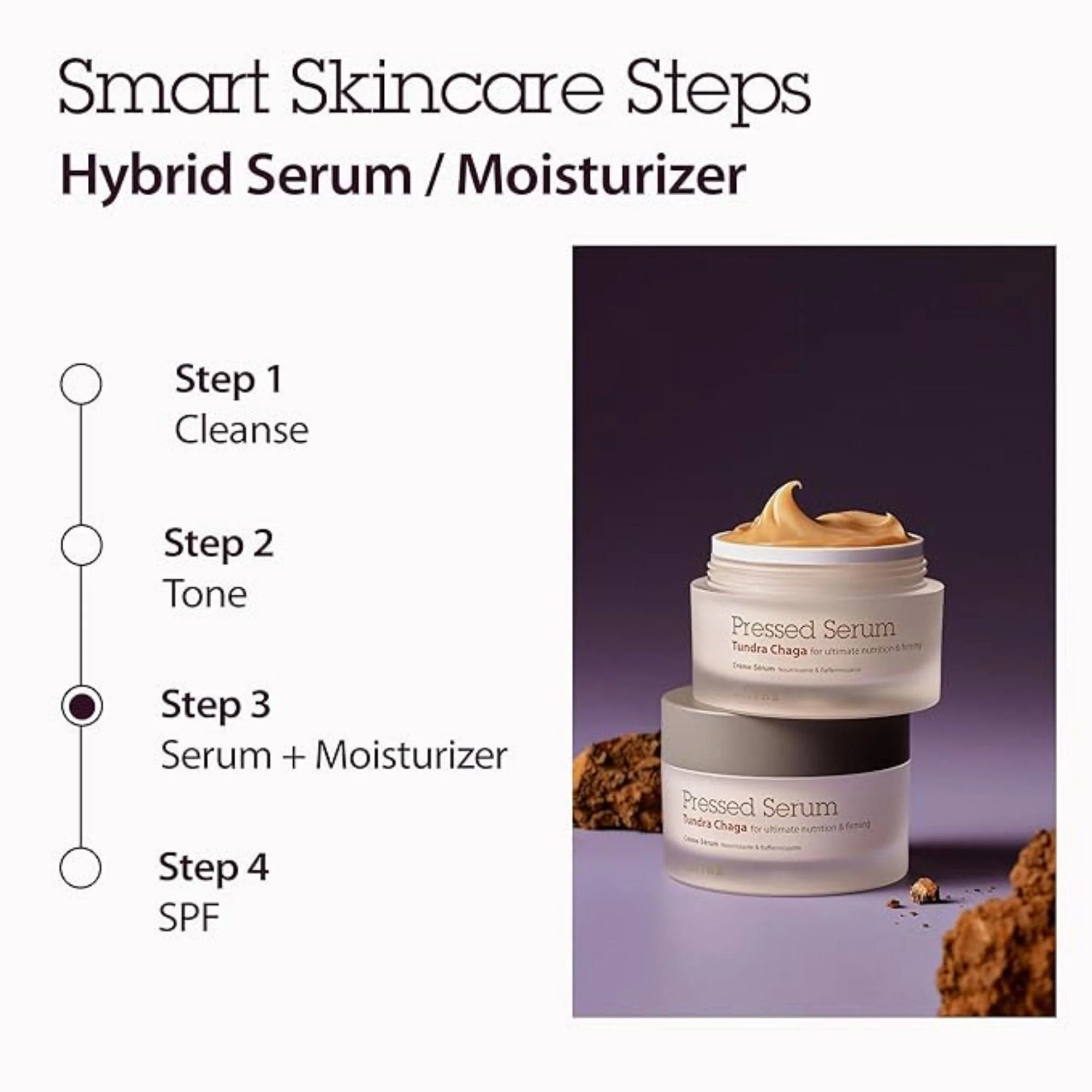 Korean skincare treatments are world-famous for their astonishing anti-aging benefits, and our Tundra Chaga Pressed Serum is an innovative take on traditional Korean beauty secrets. We use the finest active ingredients in this chaga cream, such as adenosine and Alteromonas ferment extract, blended with a powerhouse of natural antioxidants from exotic regions all over the world. With a whopping 59.4% chaga concentration, this pressed serum is a reservoir of skin-loving nutrients that rejuvenate and revitalize.