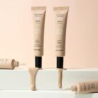 Apply the desired amount of product and blend evenly using a sponge, brush, or fingertips. It doesn’t require a separate primer or foundation.